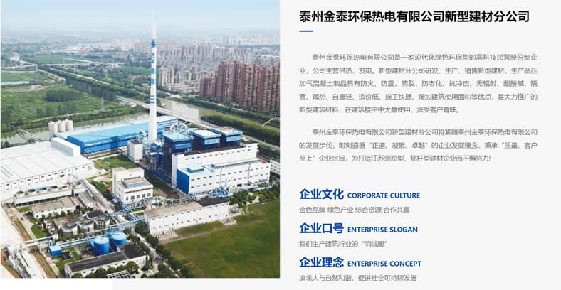 乐动网位于“水陆要津,咽喉据郡”之称的历史文化名城--江苏泰州,是一家现代化绿色环保、高新技术型民营股份制企业。公司主营供热、发电,致力于发展环保事业,奉献清洁能源。2020年3月成立金泰环保热电有限公司新型建材分公司,分公司是集研发、生产、设计、销售为一体的专业化新型建材企业。