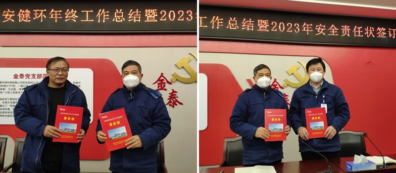 2022年度安健环工作总结会议后,举行了2023年安全目标责任状签订仪式。按照“分级管理,层层签订”的原则,总经理与分管副总、各部门分别签订了2023年度安全生产目标管理责任书。从安全管理目标、安全生产职责等方面明确各层级肩负的安全管理职责,并双向承诺,层层压实责任,推进安全生产责任制落实到人到岗,保障公司2023年安全生产工作平稳有序进行。